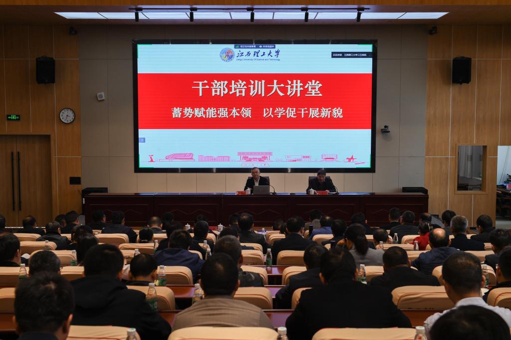 在三江校区启航会议中心1号会议厅举行“干部培训大讲堂”之一流学科建设专题培训。华南师范大学卢晓中教授受邀作题为《中国式现代化视域下对优化一流学科建设模式的若干思考》的讲座,校党委副书记、校长温和瑞出席培训,学校全体中层干部参加培训。南昌校区、先进铜产业学院同步视频参加培训。培训由校党委副书记罗仙平主持。