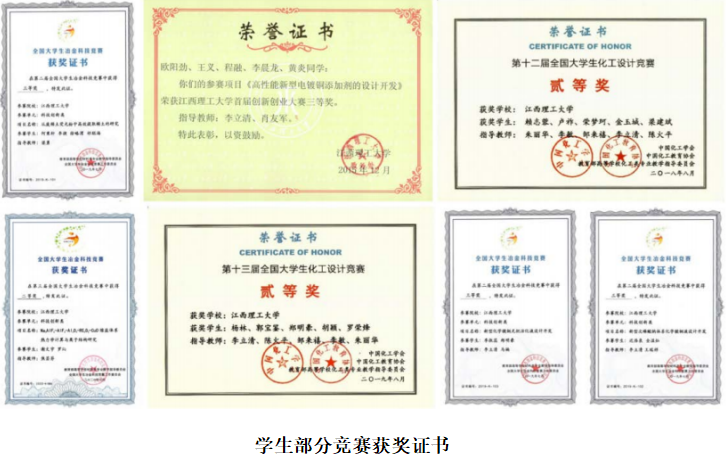 教师获奖等级和数量增多:廖春发获全国优秀教师、省级教学名师、宝钢优秀教师、国家百千万人才等称号;梁勇获全国有色金属优秀青年科技者称号;李立清入选江西省杰出青年人才和赣州市科技创新人才培养计划;余新阳入选江西省井冈特聘教授。