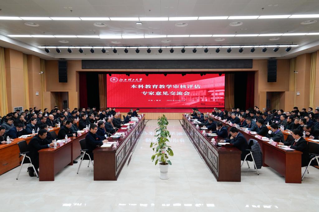 本科教育教学审核评估专家意见交流会在三江校区三实楼一楼多功能厅举行。专家组组长、成都工业学院原党委书记严余松等入校评估专家组成员和项目管理员、秘书,江西省教育评估监测研究院院长丁国华,赣州市人民政府副市长张骅,快猫
