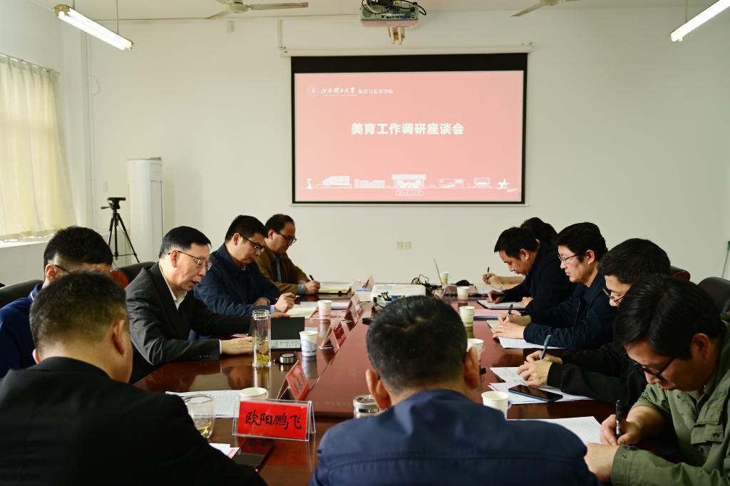 在体育与艺术学院301会议室召开美育工作调研座谈会。校党委书记杨斌出席会议,校党委组织部、党委学生工作部、教务处、人事处、发展规划处、校团委、建筑与设计学院等相关单位负责人及体育与艺术学院领导班子成员参加会议。会议由校党委常委、组织部部长刘志刚主持。