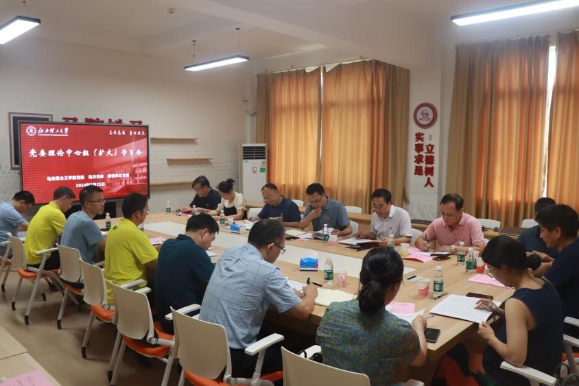 7月25日上午,马克思主义学院党委联合机关党委、教辅单位党委在学院A402会议室召开党委理论学习中心组(扩大)学习会议,深入学习贯彻党的二十届三中全会精神。