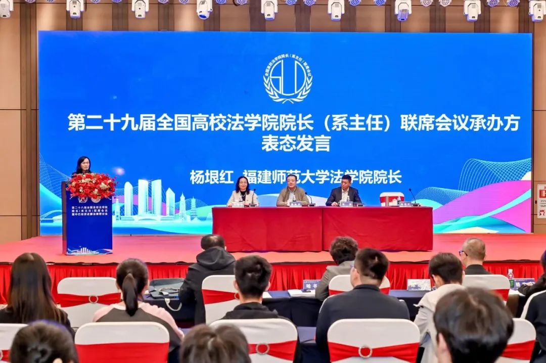闭幕式上还进行了全国高校法学院院长(系主任)联席会议会旗交接,福建师范大学法学院院长杨垠红代表下届会议承办方作表态发言。