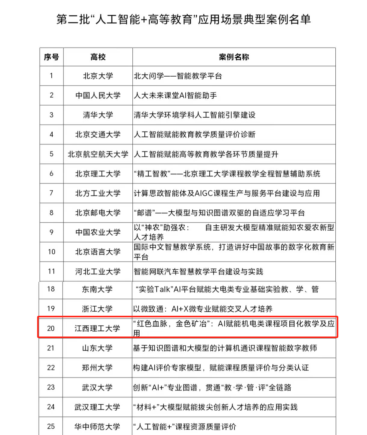 “‘红色血脉,金色矿冶’:AI赋能机电类课程项目化教学及应用”为江西省唯一成功入选的案例。此次入选的案例,以AI赋能教育教学、产教融合为基础,开启了以红色思政教育铸魂,以金色矿冶特色添彩,以人工智能技术赋能的机电类课程项目化教学改革创新。学校将以此为契机,继续推动“人工智能+高等教育”的发展,将信息化技术运用到教育教学中,赋能教育教学的高质量发展。