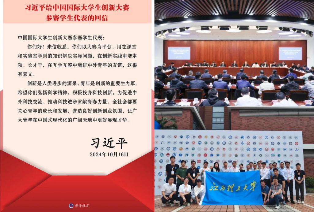 稀土学院冶金工程专业博士研究生潘锡翔等25名中国国际大学生创新大赛参赛学生代表回信。回信引发师生热烈反响,并激励全体师生勇担使命、踔厉奋发,为科技创新事业贡献青春力量!