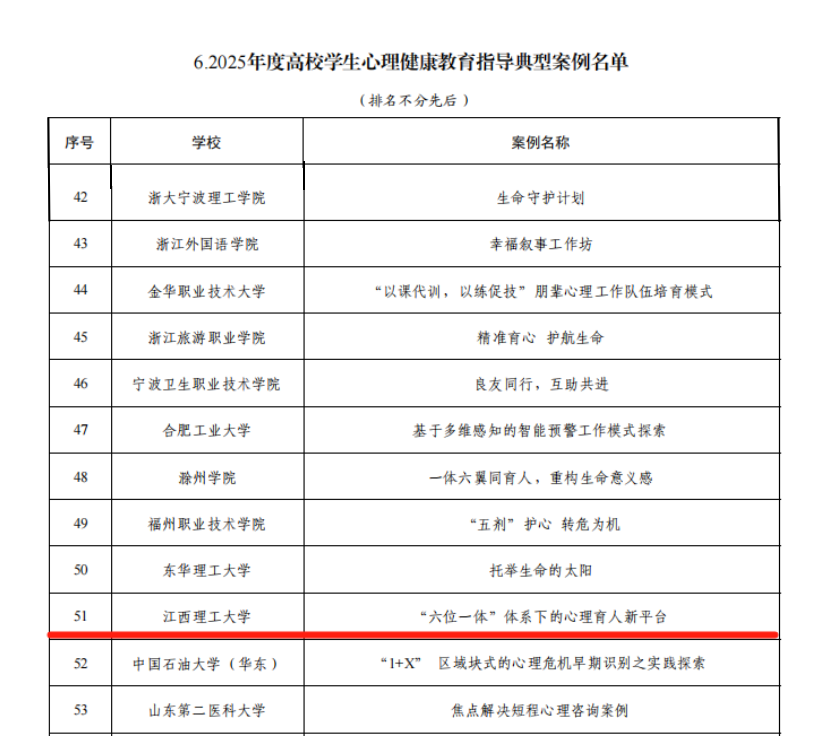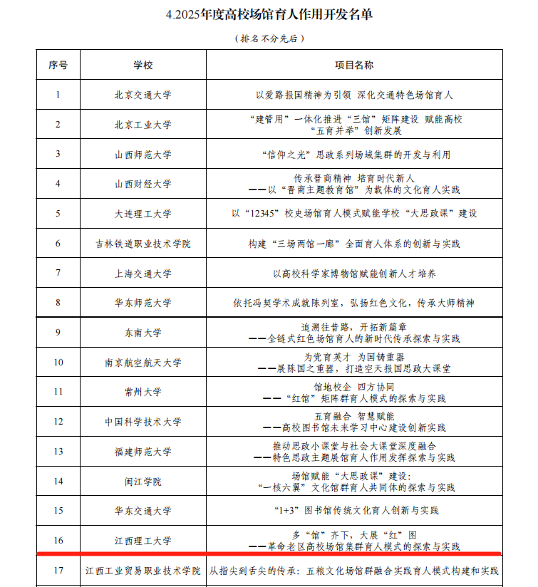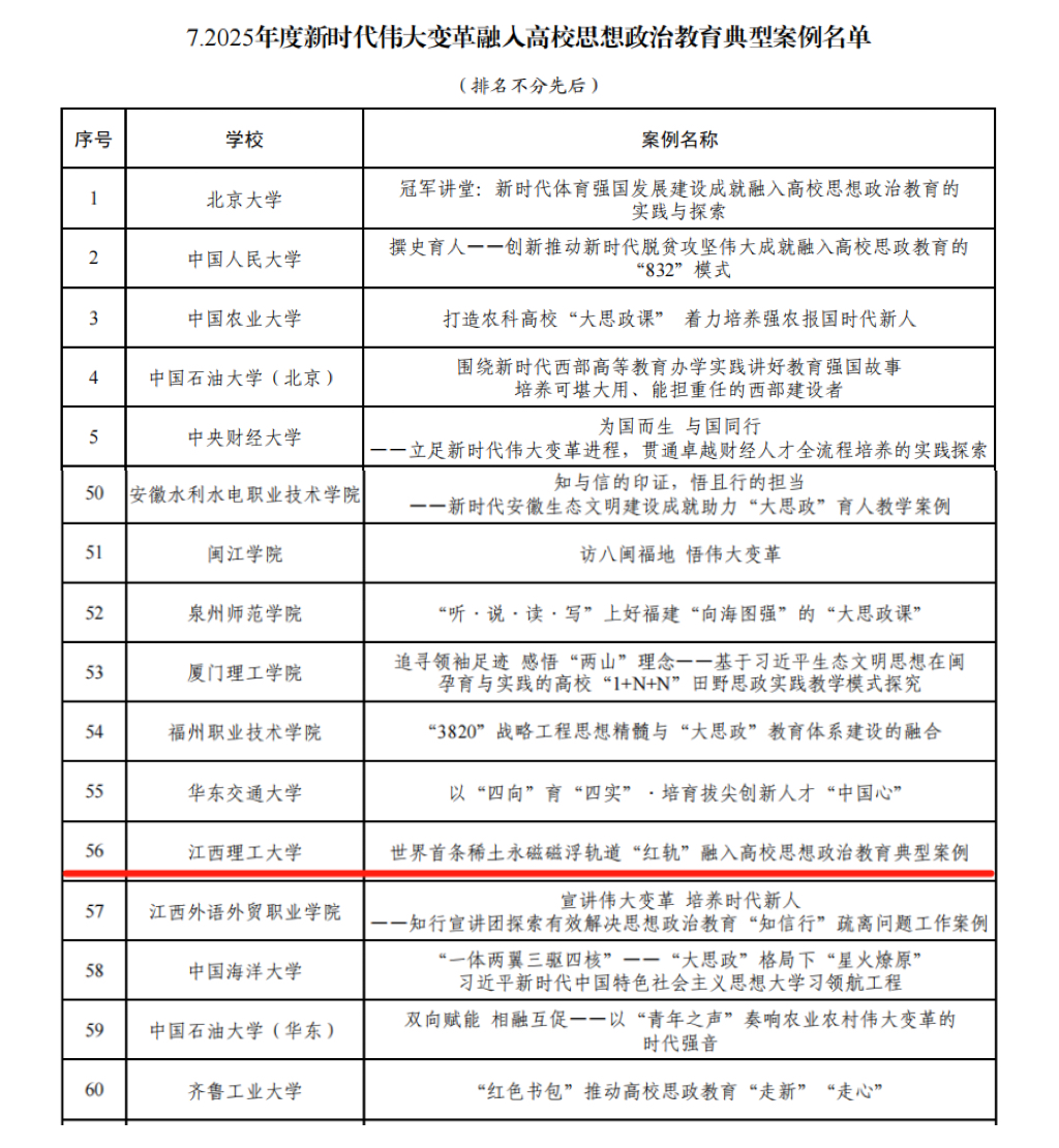 本网讯 近日,教育部公布了2025年度高校思想政治工作质量提升综合改革与精品建设项目遴选结果。快猫 共4个项目入选,其中,“中国古诗词合唱音乐会”项目入选2025年度高校原创文化精品,“多‘馆’齐下,大展‘红’图——革命老区高校场馆集群育人模式的探索与实践”入选2025年度高校场馆育人作用开发,“‘六位一体’体系下的心理育人新平台”入选2025年度高校学生心理健康教育指导典型案例,“世界首条稀土永磁磁浮轨道‘红轨’融入高校思想政治教育典型案例”入选2025年度新时代伟大变革融入高校思想政治教育典型案例,入选总数并列全省第一。