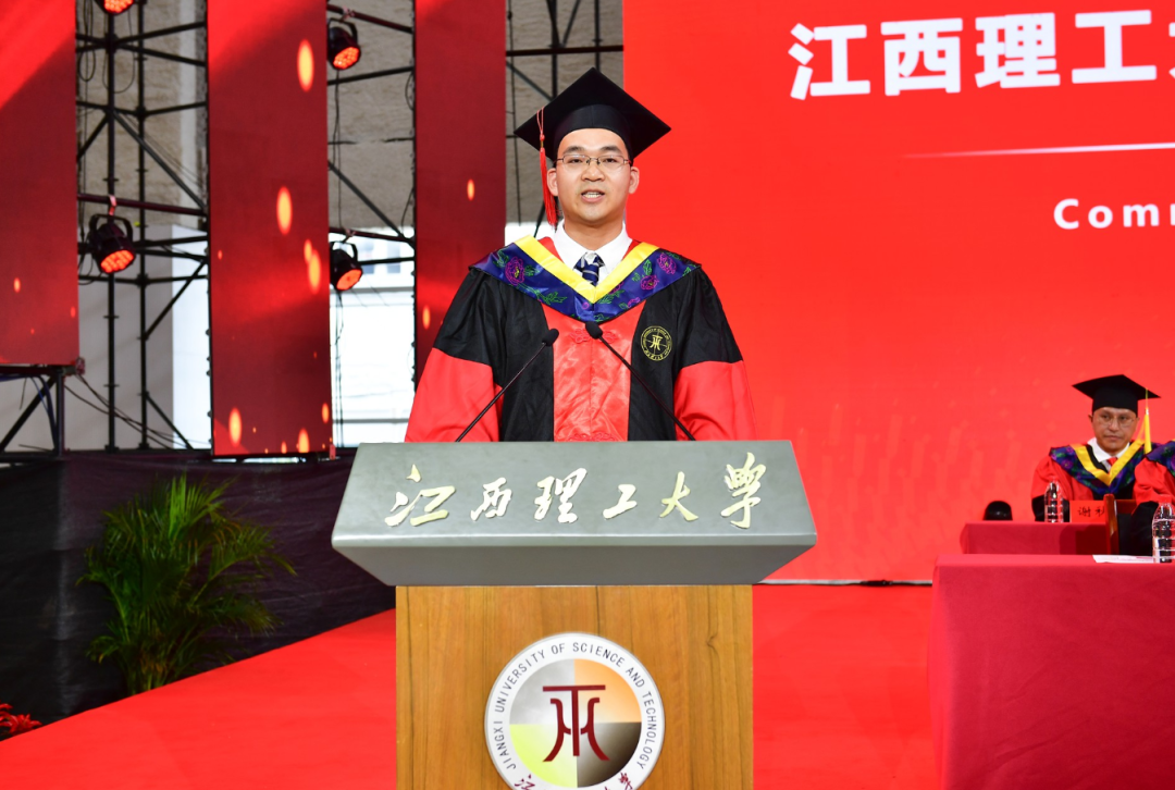 毕业本科生代表,第十五届中国大学生铸造工艺设计大赛国赛一等奖、江西省大学生创新大赛高教主赛道金奖、国家奖学金、宝钢优秀学生奖获得者,材料科学与工程学院金材213班吴若琛同学分享了满载收获与感动的四年大学时光,他表示,作为新时代的青年学子,将会继续努力拼搏、砥砺前行,做拥有智慧富有激情的人,做怀揣梦想脚踏实地的人,做德才兼备敢挑重担的人!
