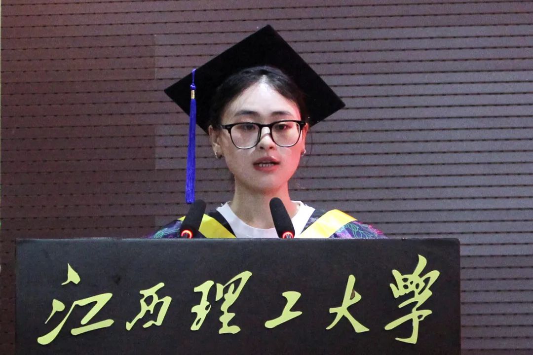 毕业硕士生代表,研究生国家奖学金、金力永磁奖学金、五好研究生标兵获得者,能源与机械工程学院22级硕士研究生罗程同学回首了三年追求真理与知识的道路,她表示,这三年,是拼搏的三年、沉淀的三年,更是成长的三年。她将铭记“志存高远,责任为先”的校训,秉持“为人诚实、基础扎实、工作踏实”的“三实”特质,把江理人的担当与奋斗带向更广阔的天地。