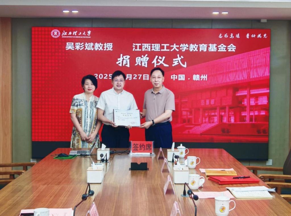 吴彩斌对学校多年来的悉心培养表示感谢。他表示,学校高质量发展为广大教师提供了施展才华的广阔舞台,大家愿意扎根江理、服务江理、建设江理,学校办学六十七年来,秉承“志存高远、责任为先”的校训精神,培养了大批“为人诚实、基础扎实、工作踏实”品质的优秀人才。此次将霍英东教育教学奖金全部捐给学校教育基金会,得到家人的大力支持,既是对学校培育之恩的回馈,也是以此次捐赠为契机,不断提升自己的专业技能,提高人才培养质量,以实际行动支持学校教育事业高质量发展。