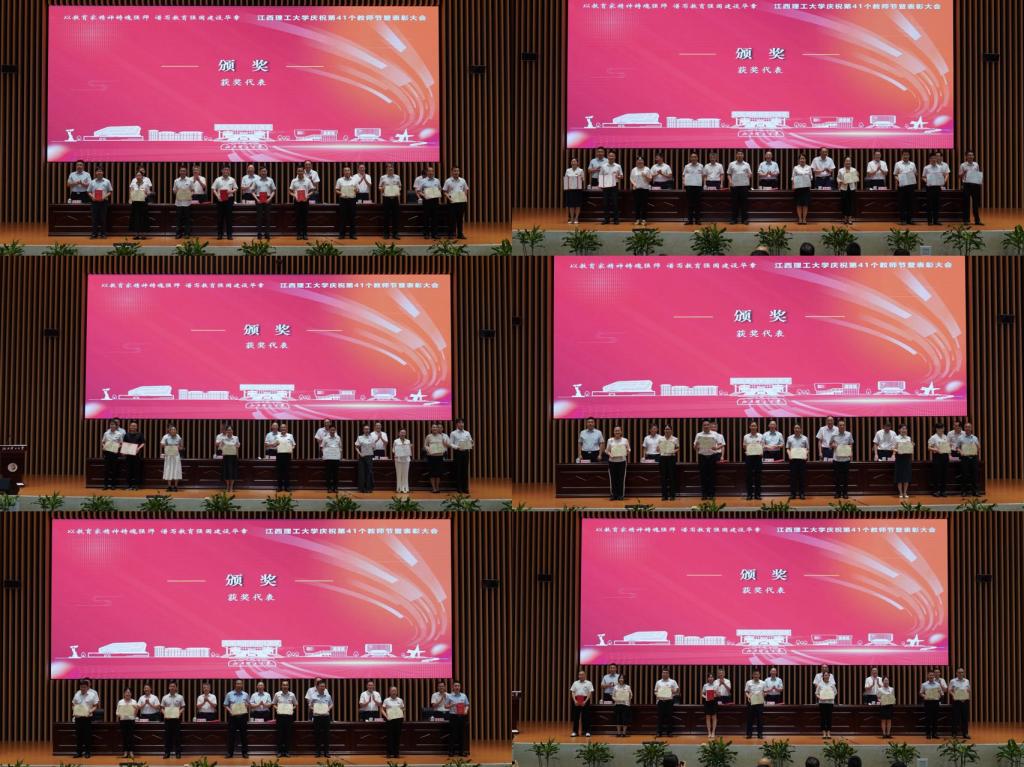 获奖教师先后上台接受表彰,校领导及与会师生向获得表彰的优秀集体与个人致以热烈的掌声。奖项包括教学成果类获奖、科研成果类获奖、上级政府或机构表彰的先进集体、上级政府或机构表彰的先进个人以及快猫