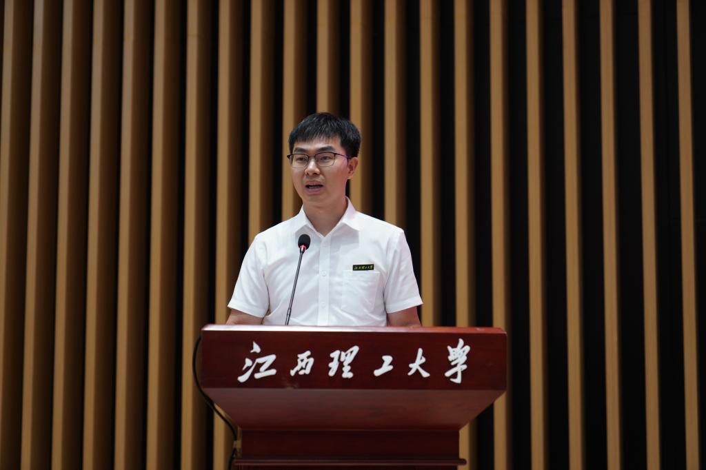 学生代表、中国国际大学生创新大赛(2024)国家级银奖获得者、2025年度江西省“最美大学生”、稀土学院2023级博士研究生潘锡翔分享了自己在江理的求学经历以及科研创新中取得的丰硕成果。他表示自己将始终牢记校训,秉承江理特质,努力将所学服务于国家需要,为实现民族复兴贡献青春力量,以此回报师恩。