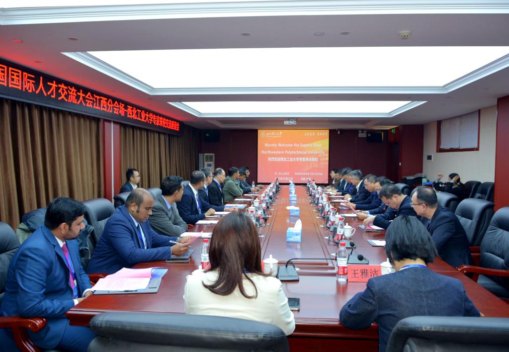 本网讯 10月23日,第23届中国国际人才交流大会江西分会场——西北工业大学专家来访,并于学校南昌校区综合实验楼二楼A207会议室举行交流座谈会。校党委常委、副校长董冰岩出席会议。校人事处、科技处、国际创新研究院、信息工程学院、能源与机械工程学院和软件工程学院相关负责人参加。会议由校孔子学院院长兼国际交流与合作中心主任蔡进宝主持。