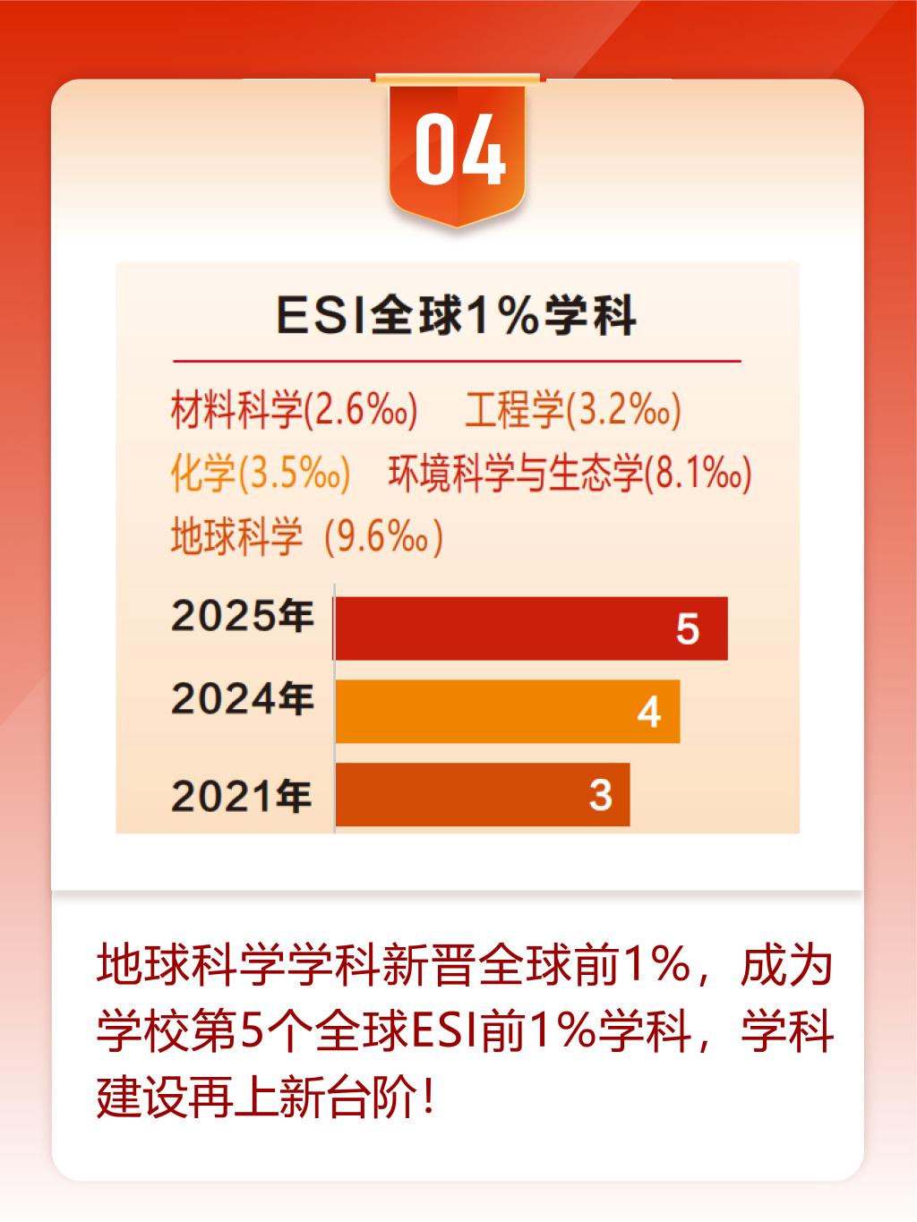 4.地球科学学科新晋全球前1%,成为学校第5个全球ESI前1%学科,学科建设再上新台阶!