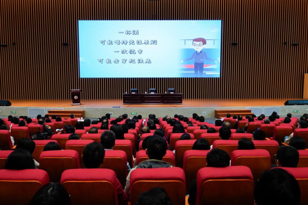 在家校领导、党委常委,校纪委委员,全校处级干部、科级干部,二级党组织纪检委员、党建组织员,各教工党支部书记参加会议。南昌校区、先进铜产业学院同步视频参会。