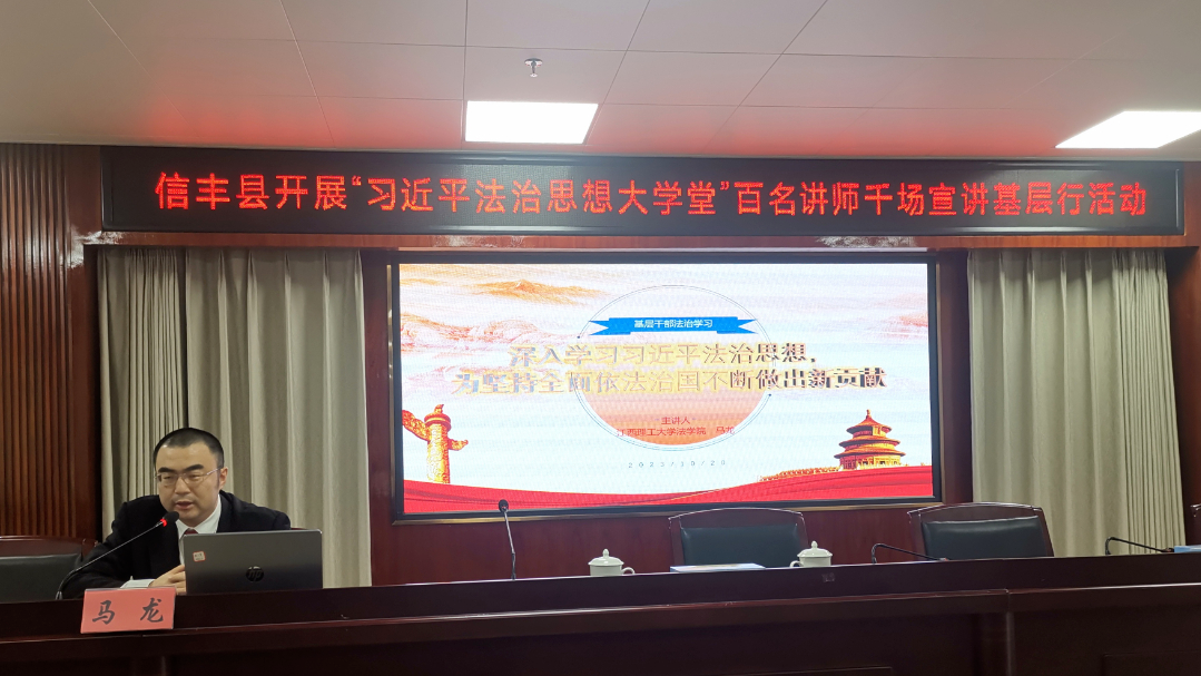 法学院教指委委员、法律系副主任马龙通过理论与事例相结合的方式授课,有效提升了习近平法治思想在基层群众中的知晓率。