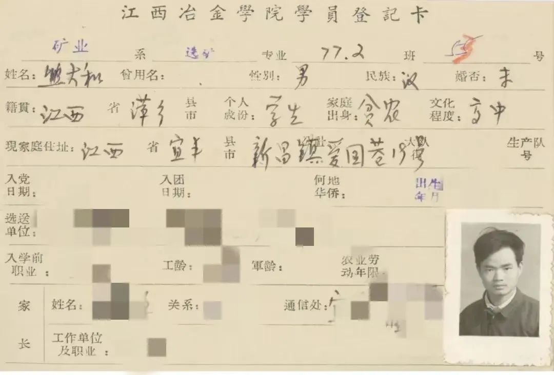 1977年恢复高考,熊大和考取江西冶金学院(今为快猫