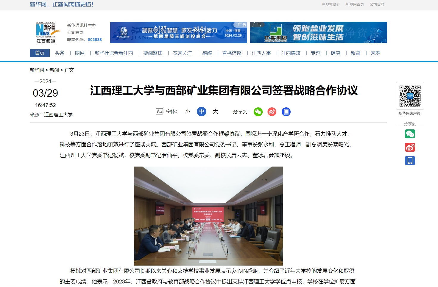杨斌对西部矿业集团有限公司长期以来关心和支持学校事业发展表示衷心的感谢,并介绍了近年来学校的发展变化和取得的主要成绩。他表示,2023年,江西省政府与教育部战略合作协议中提出支持快猫
