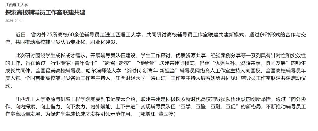 ,共同研讨高校辅导员工作室联建共建新模式,通过多种形式的合作与交流,共同推动高校辅导员队伍专业化、职业化建设。