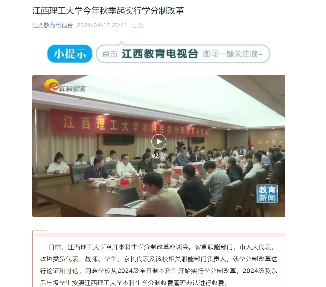 日前,快猫 召开本科生学分制改革座谈会。省直职能部门,市人大代表,政协委员代表,教师、学生、家长代表及该校相关职能部门负责人,就学分制改革进行论证和讨论,同意学校从2024级全日制本科生开始实行学分制改革,2024级及以后年级学生按照快猫 本科生学分制收费管理办法进行收费。