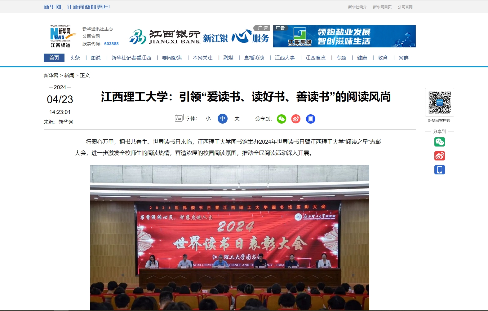 2024年世界读书日表彰大会。新华网发 韩帅杰 摄