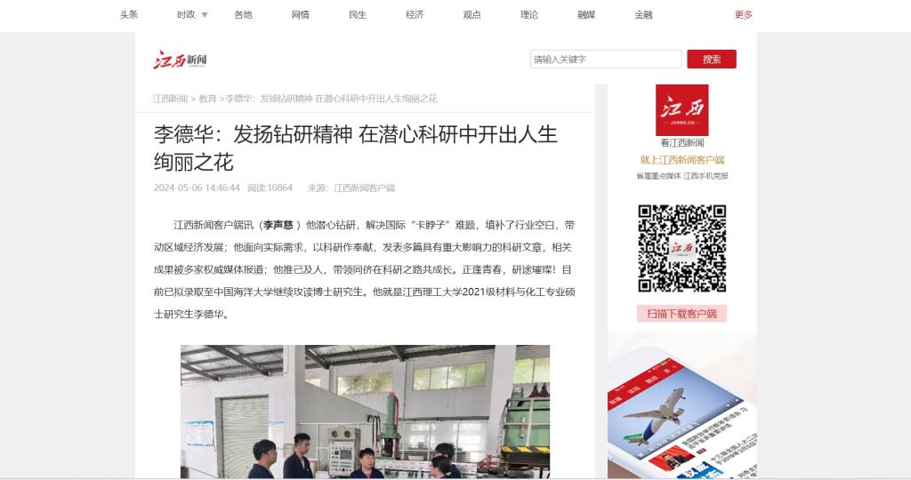 江西新闻客户端讯(李声慈)他潜心钻研,解决国际“卡脖子”难题,填补了行业空白,带动区域经济发展;他面向实际需求,以科研作奉献,发表多篇具有重大影响力的科研文章,相关成果被多家权威媒体报道;他推己及人,带领同侪在科研之路共成长。正逢青春,研途璀璨!目前已拟录取至中国海洋大学继续攻读博士研究生。他就是快猫