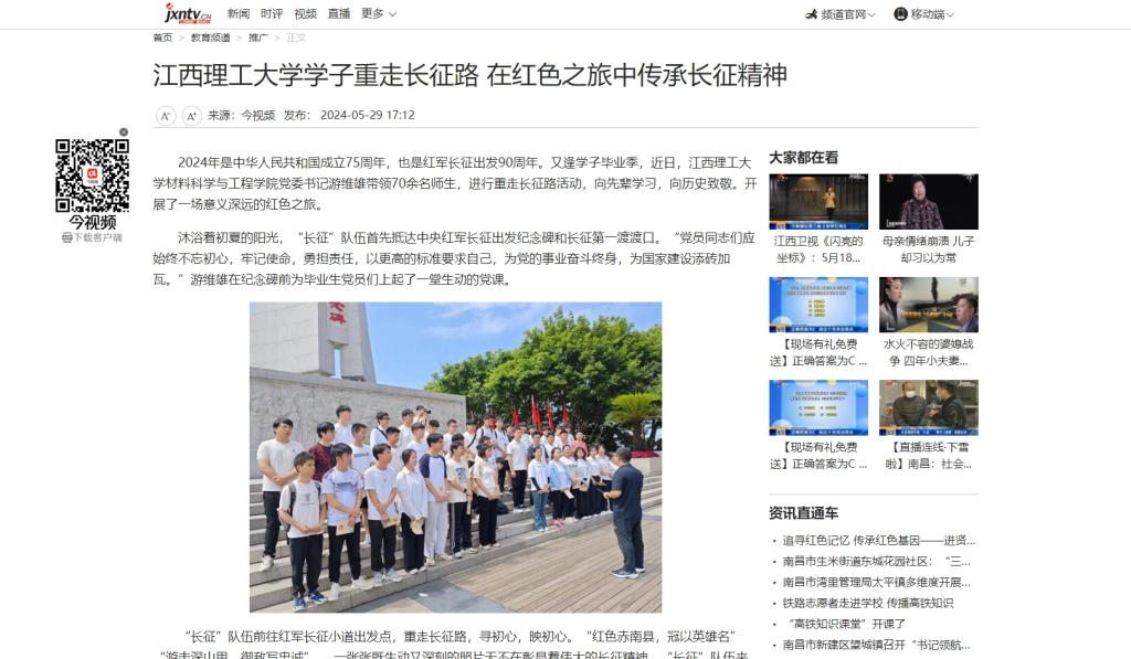 材料科学与工程学院党委书记游维雄带领70余名师生,进行重走长征路活动,向先辈学习,向历史致敬。开展了一场意义深远的红色之旅。