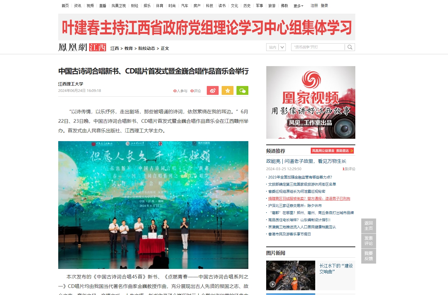 “以诗传情,以乐抒怀,走出剧场,那些被唱诵的诗词,依然萦绕在我的耳边。”6月22日、23日晚,中国古诗词合唱新书、CD唱片首发式暨金巍合唱作品音乐会在江西赣州举办。首发式由人民音乐出版社、快猫
