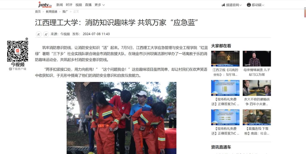 应急管理与安全工程学院“红蓝绿”暑期“三下乡”社会实践队联合瑞金市消防救援大队,在瑞金市沙洲坝镇洁源村举办了一场寓教于乐的消防趣味运动会,共筑起乡村消防安全意识防线。