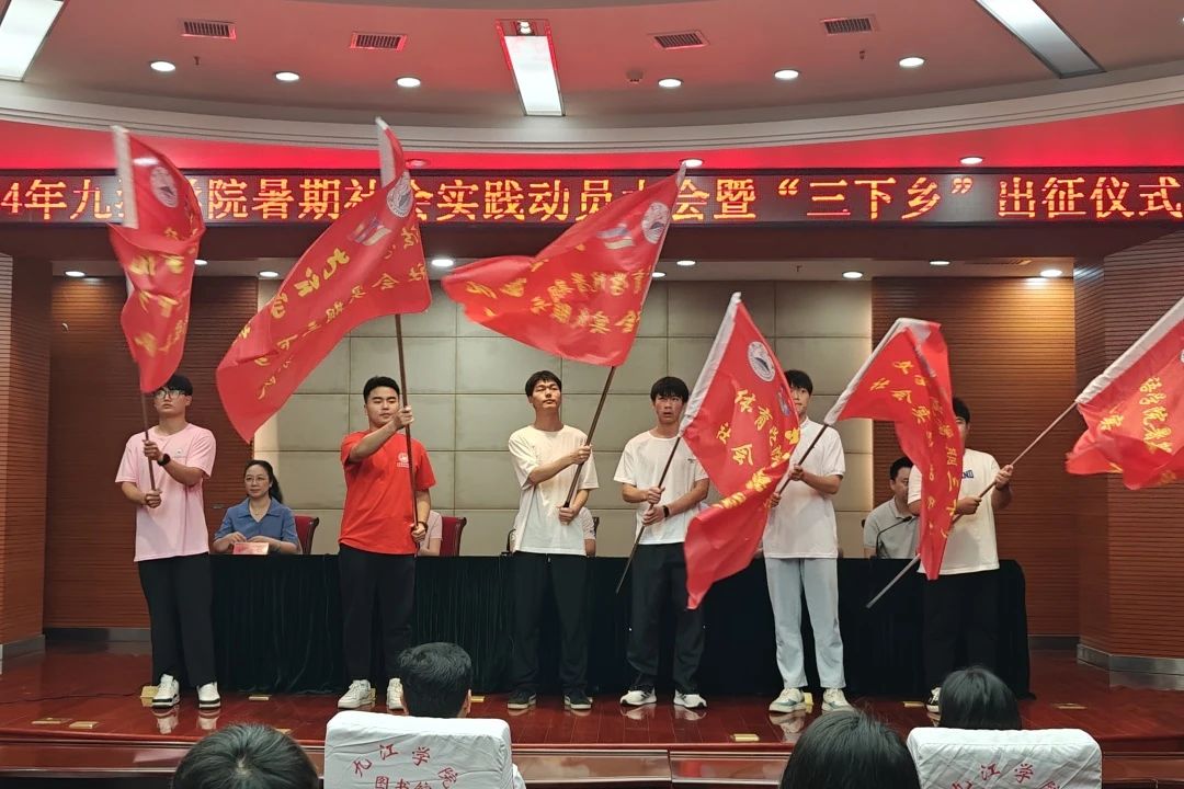 日前,九江学院举行2024年暑期社会实践动员大会暨“三下乡”出征仪式。副校长雷志强在出征仪式上勉励志愿者们在实践中坚定理想、锤炼品格,在实践中服务社会、彰显价值,努力把服务社会发展的论文写在祖国大地上。