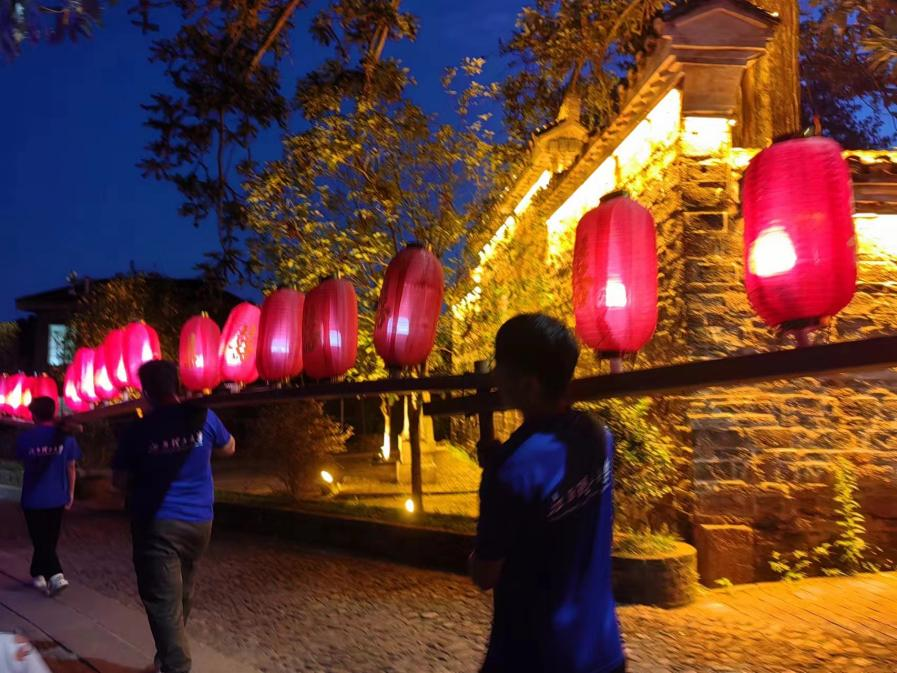 江理学子从做桥梆做起,在村民指导下扎灯框、安灯光。从难以完成制作到最后二十组桥梆灯张灯结彩,同学们从早忙到晚。傍晚时分,同学们敲起锣鼓,肩扛“桥梆灯”,从村头走到村尾,红色的灯笼蜿蜒而去,犹如一条长龙。村民们欣赏着近年来最年轻的“桥梆灯”表演,不断为这些年轻的“文化传承者”鼓掌喝彩。