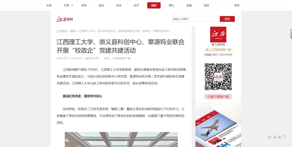 党委常委、副校长廖春发带领冶金工程学院党委稀有金属党支部赴崇义,与崇义县科技创新中心党支部、章源钨业机关第二党支部开展校政企党建共建活动。快猫