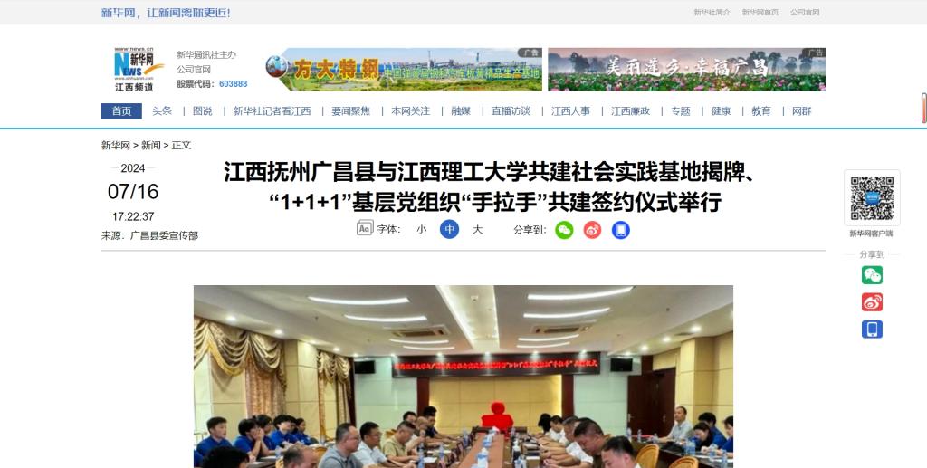 与江西抚州广昌县共建社会实践基地揭牌、“1+1+1”基层党组织“手拉手”共建签约仪式举行,广昌县委书记吴自胜,快猫