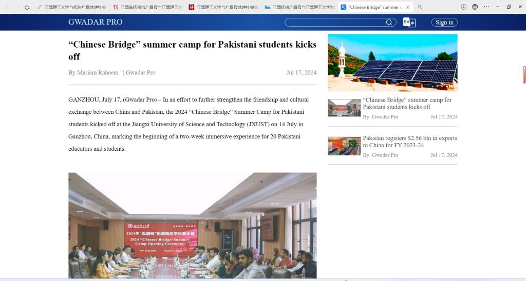 GANZHOU, July 17, (Gwadar Pro) – In an effort to further strengthen the friendship and cultural exchange between China and Pakistan, the 2024 “Chinese Bridge” Summer Camp for Pakistani students kicked off at the Jiangxi University of Science and Technology (JXUST) on 14 July in Ganzhou, China, marking the beginning of a two-week immersive experience for 20 Pakistani educators and students.