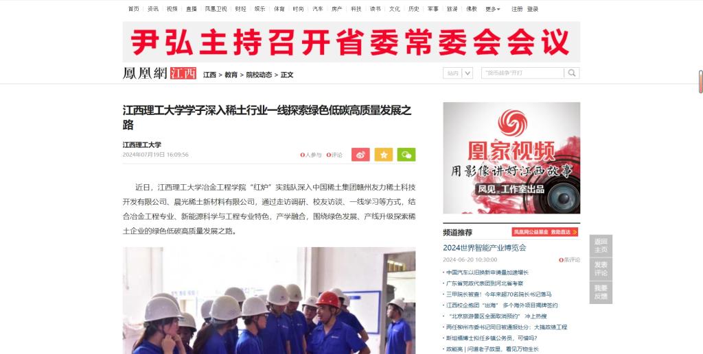 冶金工程学院“红炉”实践队深入中国稀土集团赣州友力稀土科技开发有限公司、晨光稀土新材料有限公司,通过走访调研、校友访谈、一线学习等方式,结合冶金工程专业、新能源科学与工程专业特色,产学融合,围绕绿色发展、产线升级探索稀土企业的绿色低碳高质量发展之路。