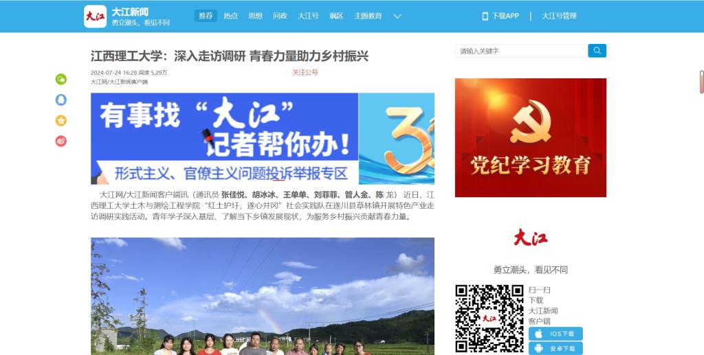 土木与测绘工程学院“红土护圩,遂心井冈”社会实践队在遂川县草林镇开展特色产业走访调研实践活动。青年学子深入基层、了解当下乡镇发展现状,为服务乡村振兴贡献青春力量。