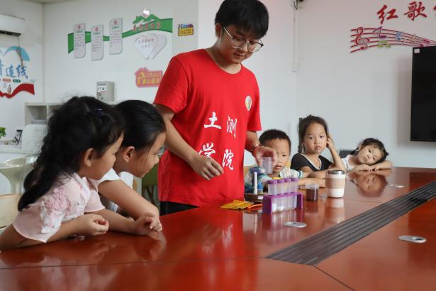 土木与测绘工程学院“水韵铸魂”社会实践团来到瑞金市沙洲坝镇,通过参观红色教育基地、在童心港湾开展科普小实验,深入挖掘水文化红色内涵,探寻水文化红色印记,以专业为特长,助力红色文化传承与融合创新发展。