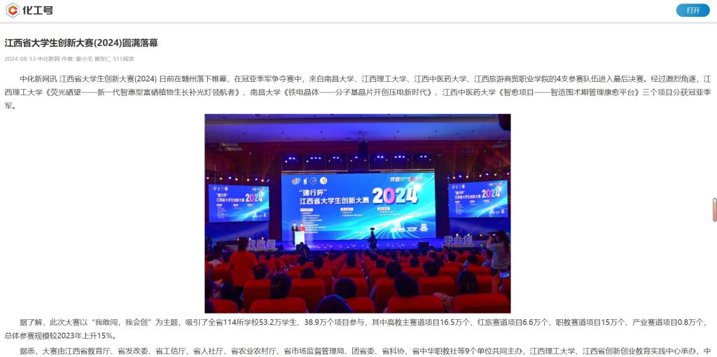 中化新网讯 江西省大学生创新大赛(2024) 日前在赣州落下帷幕,在冠亚季军争夺赛中,来自南昌大学、快猫