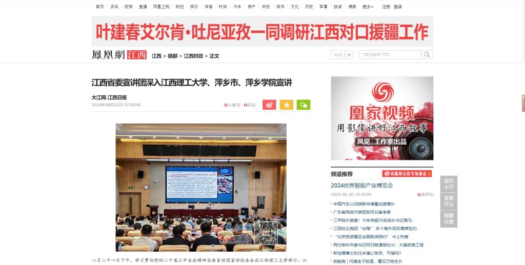 八月二十一日上午,学习贯彻党的二十届三中全会精神省委宣讲团宣讲报告会在萍乡市举行。江西日报全媒体记者 陈记昌摄