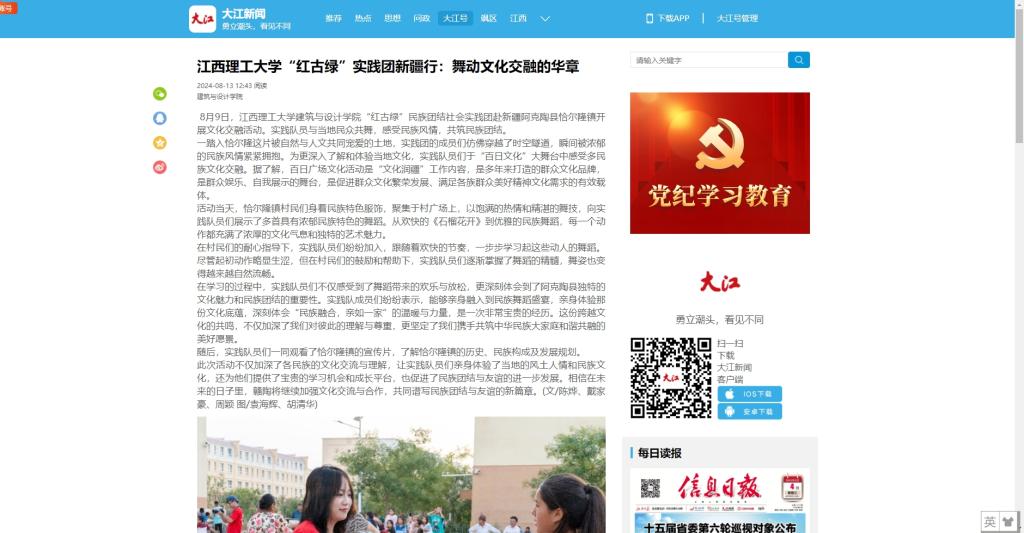 建筑与设计学院“红古绿”民族团结社会实践团赴新疆阿克陶县恰尔隆镇开展文化交融活动。实践队员与当地民众共舞,感受民族风情,共筑民族团结。