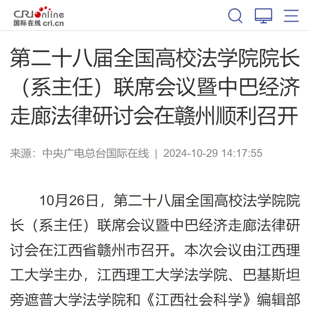 10月26日,第二十八届全国高校法学院院长(系主任)联席会议暨中巴经济走廊法律研讨会在江西省赣州市召开。本次会议由快猫