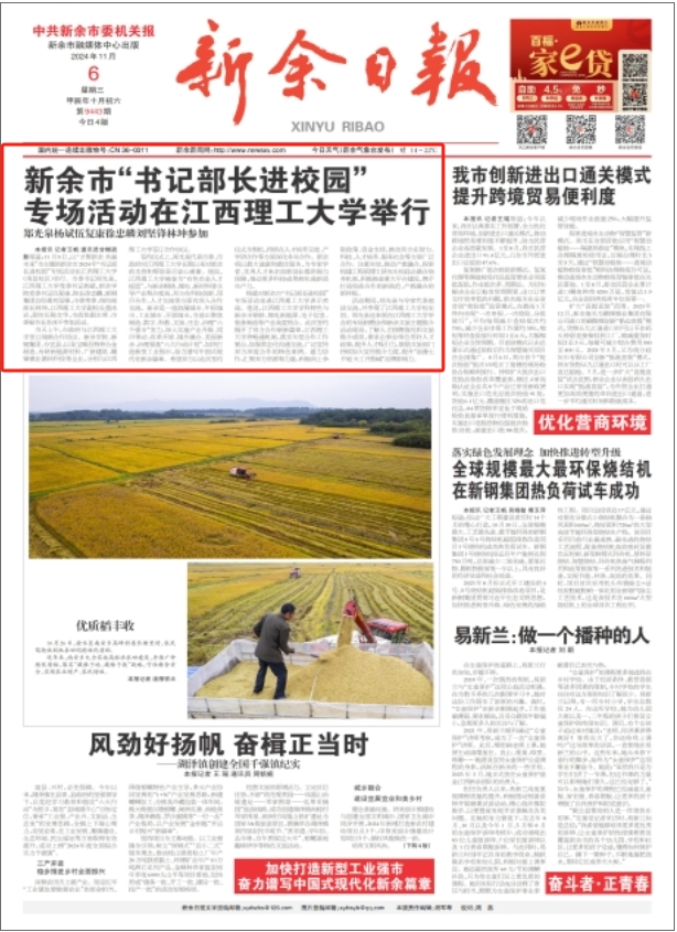 本报讯 记者王帆 通讯员甘榭疏影报道:11月5日,以“才聚新余共赢未来”为主题的新余市2024年“书记部长进校园”专场活动在快猫