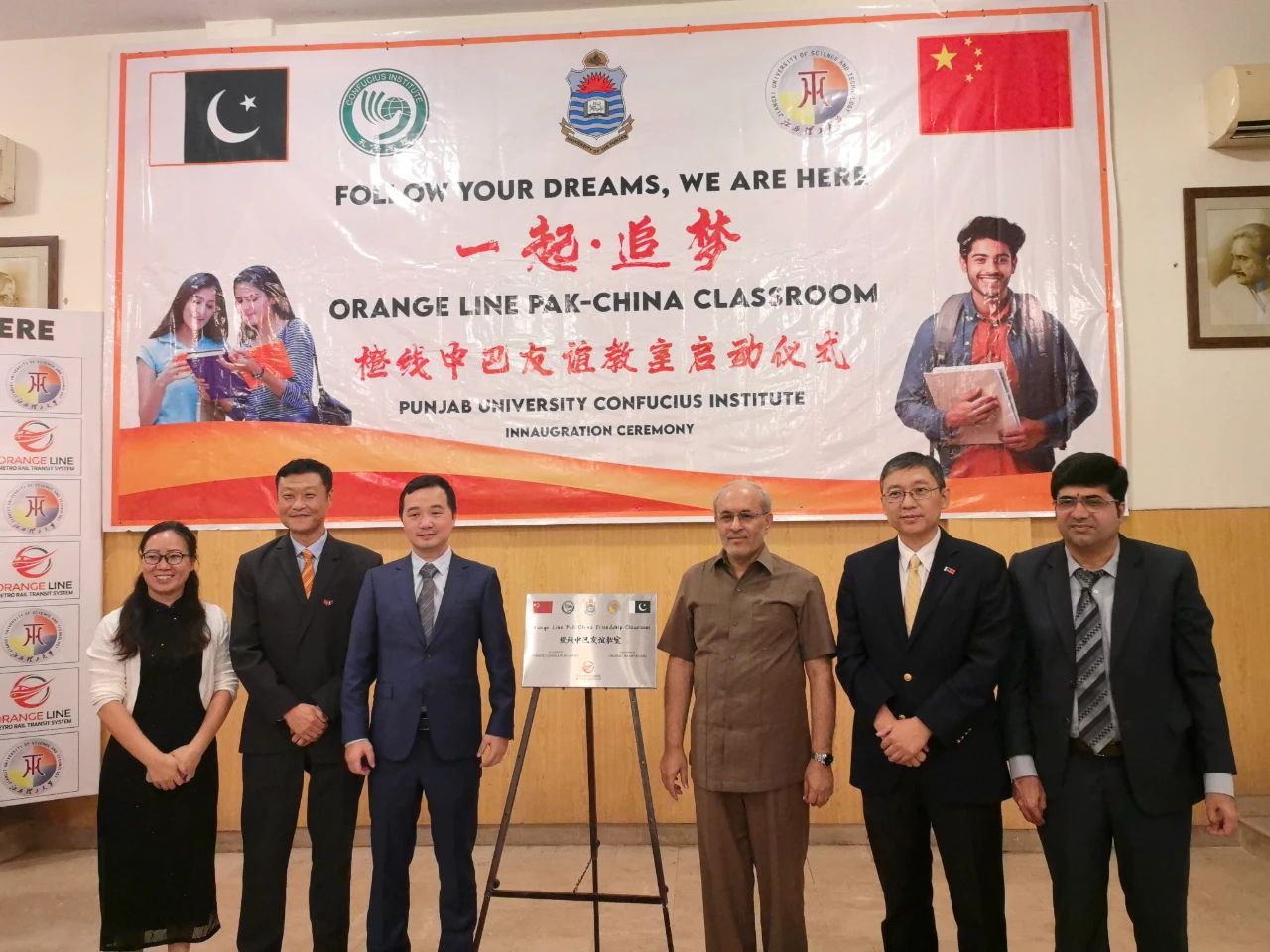 11月4日,曹珂代总领事应邀出席拉合尔橙线项目向旁遮普大学孔子学院捐赠中巴友谊教室仪式,橙线首席执行官谭子东、旁遮普大学副校长卡利德、孔院巴方院长沙菲克、中文教师陈美芬等近百人参加,孔院中方院长蔡进宝通过视频致辞。