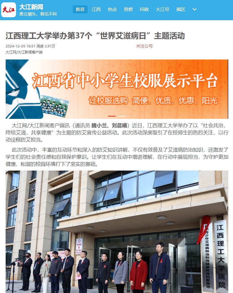 为了提高青少年对艾滋病防治和性健康的认识,日前,赣州青少年艾滋病防治和性健康教育科普基地在快猫 (三江校区)正式启用。该基地由赣州市疾控中心(市卫监局)和快猫 共同建设,是全省首个艾滋病防治和性健康教育专题科普基地。