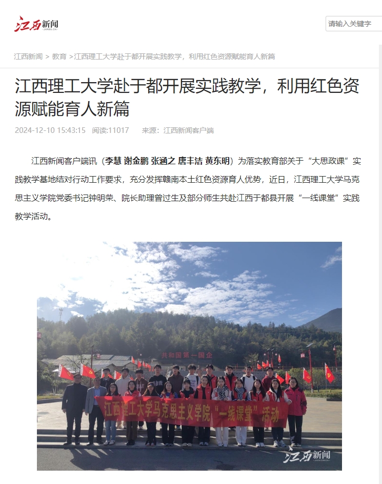 《江西新闻》:快猫 赴于都开展实践教学,利用红色资源赋能育人新篇
