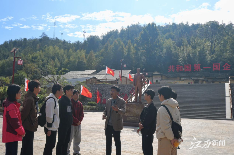 江西铁山垅钨矿公司原总经理助理华峰在公司旧址前与实践队员们就有关矿业的红色历史及行业发展等一系列问题展开了对话,同时,华峰从矿脉、矿性、选矿等角度对钨矿的开采做了分析,并结合国家政策,强调新质生产力在未来发展中的重要性,勉励学校矿业新人坚持中国共产党的领导,为矿业智能化、机械化、安全化贡献青春力量。