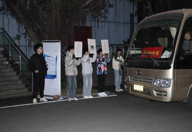 考研学子坐上送考车辆出发考场当一辆辆送考车辆缓缓启动时,考研学子背负着梦想和希望,踏上了通向成功的征程。无声的出征号角响起,鼓动着每个考研学子的心。车队缓缓启动,送考途中,自驾送考的老师与送考大巴皆严格遵守交通规则,把控行车速度,确保安全、准时将考生们送达考场。此外,他们还时刻关注考生们的情绪状态,及时疏导大家的紧张情绪,增强应试信心。“研”途漫漫,昼夜兼程,各种滋味只有自己品尝。回首望去,备战考研的征途,江理的考研学子从来不是孤军奋战。