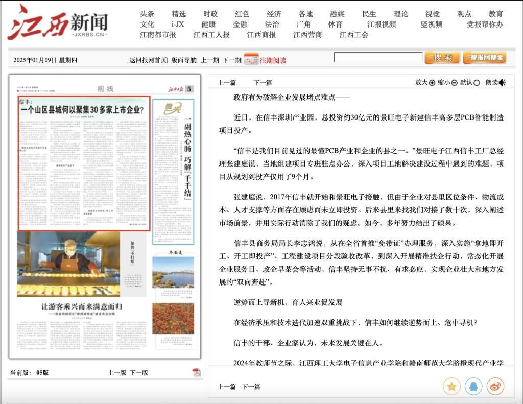 “信丰是我们目前见过的最懂PCB产业和企业的县之一。”景旺电子江西信丰工厂总经理张建庭说,当地组建项目专班驻点办公,深入项目工地解决建设过程中遇到的难题,项目从规划到投产仅用了9个月。