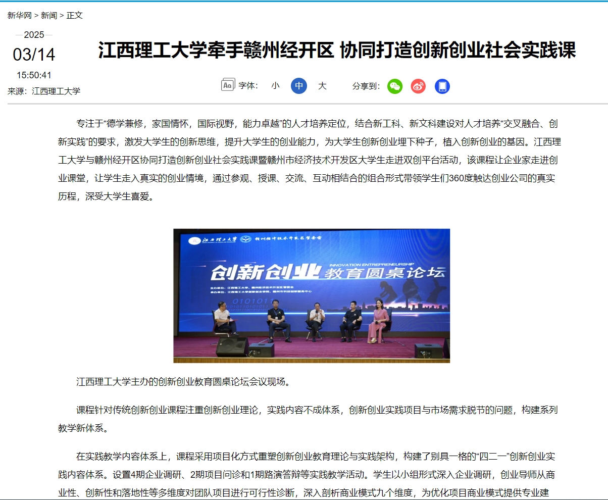 与赣州经开区协同打造的创新创业社会实践课,为学生提供创新创业广阔平台,为地方经济发展增添新动力,为培养新时代创新创业人才积累宝贵经验,在全国范围内具有重要的推广借鉴价值。