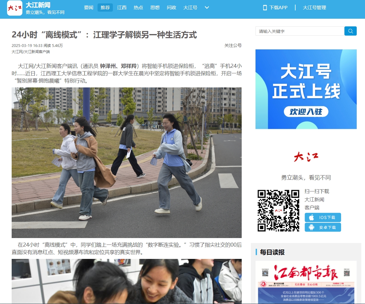 这场24小时的“离线对谈”,不仅是一次行为实验,更能唤起江理青年学子的觉醒:暂别屏幕是对生活深度的探索,是一种唤醒自我对现实世界的珍视行动。活动让更多大学生思考时间管理与情感维系,在数字洪流中锚定自我价值。
