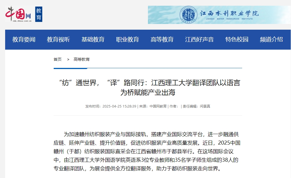 外国语学院师生在直采会中的表现,不仅展现了高校翻译人才培养的显著成果,更印证了“语言联通世界”的深远意义。在为赣州纺织服装“出海”按下加速键的同时,更是践行深化应用型人才培养改革的生动注脚。当纺织服装产业的“中国制造”通过精准的语言走向全球,当江理学子在实战中成长为行业需要的复合型人才,这条产教融合的道路,正为地方经济的高质量发展注入新的活力。(尧佳琳、徐玉冉)