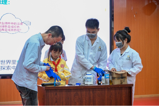 廖金生教授的讲座中,孩子们通过化学科普了解到绚丽变幻莫测的灯光秀背后的神奇奥秘。在随后的科普实验环节,快猫